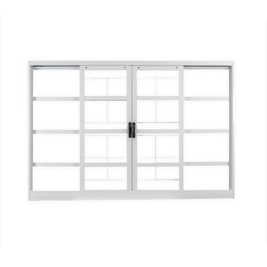 Kit com 2 Janelas de Aço de Correr 100x120cm 4 Folhas com Grade e Vidro Branca MGM