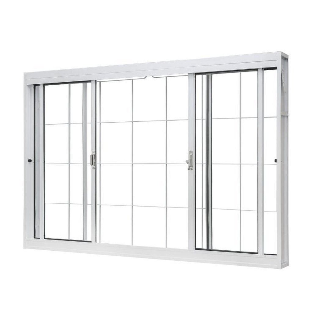 Kit com 2 Janelas de Aço de Correr Central 100x120cm 4 Folhas com Grade Quadriculada e Vidro Liso