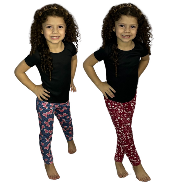 Kit Com 2 Leggings Infantil Suplex Estampas Variadas