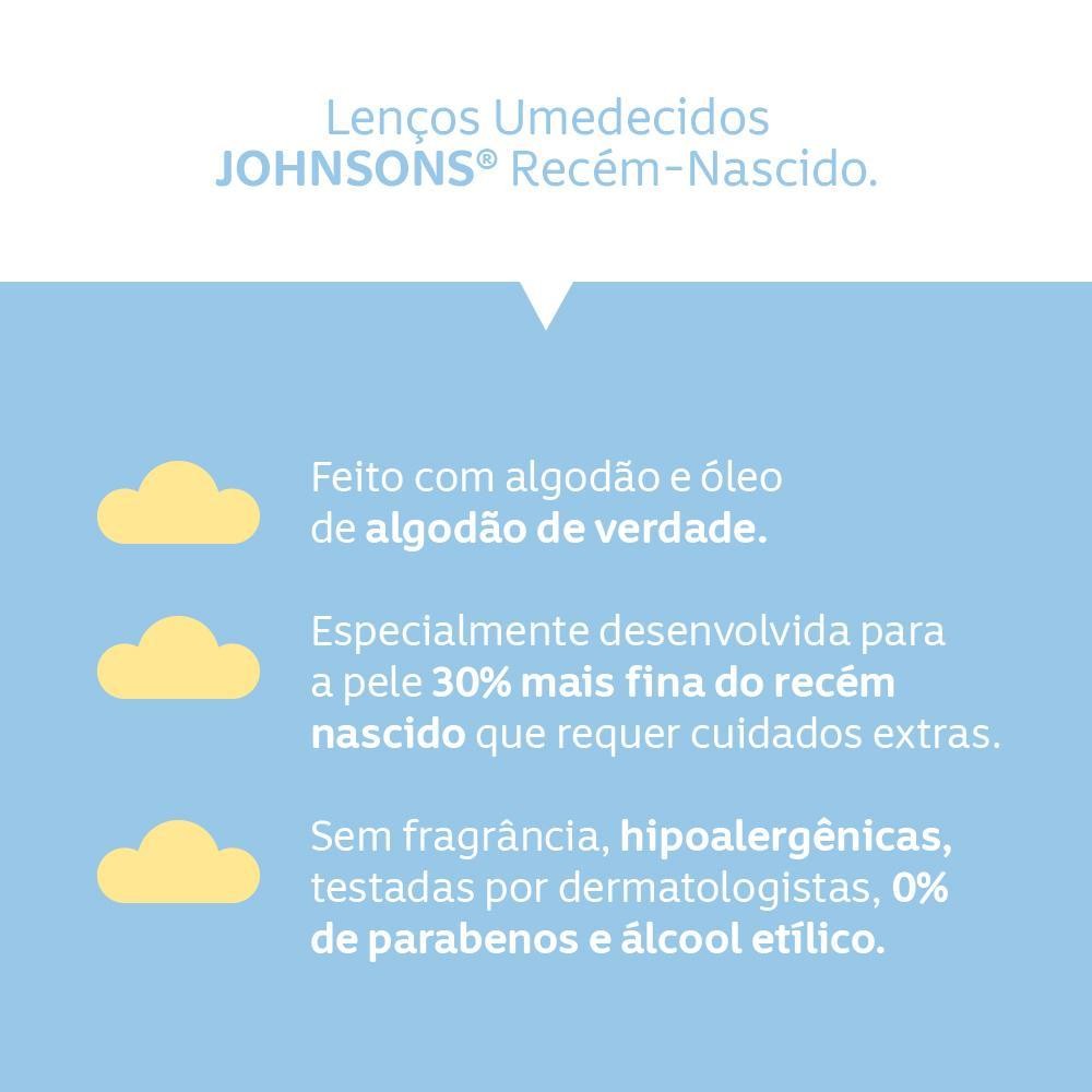 O Kit Contém: 2 Lenços Umedecidos Johnson's Baby Recém-Nascido Sem Fragrância com 96 unidades cada. As toalhinhas JOHNSON'S® Recém-Nascido foram desenvolvidas para cuidar da pele mais delicada, mesmo após as diversas trocas do dia. Com óleo puro de algodão, limpa suavemente sem deixar resíduos. BENEFÍCIOS: - Foram desenvolvidas para cuidar da pele mais delicada, mesmo após as diversas trocas do dia. - Com óleo puro de algodão, limpa suavemente sem deixar resíduos. - Clinicamente comprovado: tão suave como água pura - Seguro desde o primeiro dia de vida - pH fisiológico e hipoalergênico. Testado por pediatras e dermatologistas MODO DE USO: Abra a tampa adesiva e puxe a primeira toalhinha pelo centro. Após o uso, feche a tampa adesiva para conservar a umidade das toalhinhas. PRECAUÇÕES: Manter fora do alcance de crianças. Em caso de irritação, suspender o uso e procurar um médico. Não usar na pele irritada ou lesionada. Deve ser aplicado por um adulto ou sob sua supervisão. Conservar em local fresco e ao abrigo da luz solar direta. Este produto foi formulado de maneira a minimizar possível surgimento de alergia. COMPOSIÇÃO: Aqua, Sodium Benzoate, Citric Acid, Carbomer, Caprylyl Glycol, Glycerin, Coco-Glucoside, Polyglyceryl-2 Dipolyhydroxystearate, Lauryl Glucoside, Glyceryl Oleate, Sodium Hydroxide, Glyceryl Polyacrylate, Gossypium Herbaceum Seed Oil.