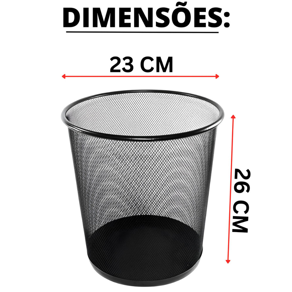 Kit Com 2 Lixeiras Metal 10 Litros Redondo Aramado Cesto Lixo Reforçado Para Escritorio Casa Quarto