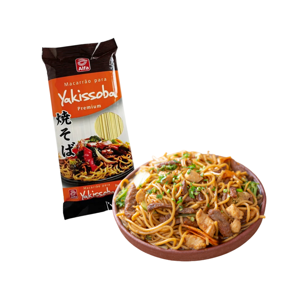 Kit Com 2 Macarrão Para Yakissoba 500g Alfa O Macarrão para Yakissoba Premium Alfa 500g é ideal para preparar o tradicional yakisoba com praticidade e sabor. Produzido com ingredientes selecionados, possui textura firme e absorve bem os molhos, garantindo um prato saboroso e autêntico. Perfeito para preparar yakissoba com legumes, carnes, frango ou frutos do mar, esse macarrão é muito utilizado na culinária oriental e também é uma excelente opção para restaurantes, lanchonetes e estabelecimentos de food service. Com embalagem de 500g, é ideal para preparar várias porções de um dos pratos orientais mais populares. Características Peso: 500g Tipo: Macarrão para yakissoba Textura firme que absorve bem os molhos Ideal para yakissoba com carnes, frango, legumes ou frutos do mar Indicado para uso doméstico e profissional Kit contém 2 pacotes de 500g Ingredientes: farinha de trigo enriquecida com ferro e ácido fólico, sal, glúten de trigo e corante natural cúrcuma. CONTÉM GLÚTEN ALÉRGICOS: CONTÉM DERIVADOS DE TRIGO. PODE CONTER TRITICALE, CENTEIO, CEVADA, AVEIA E SOJA.