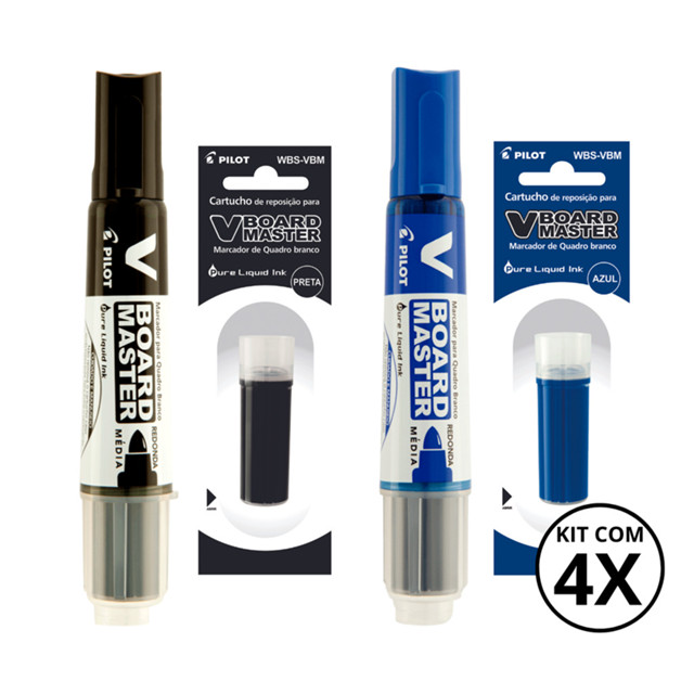 Kit com 2 Marcadores Para Quadro Branco + 2 Refis Board Master - PILOT KITS:6