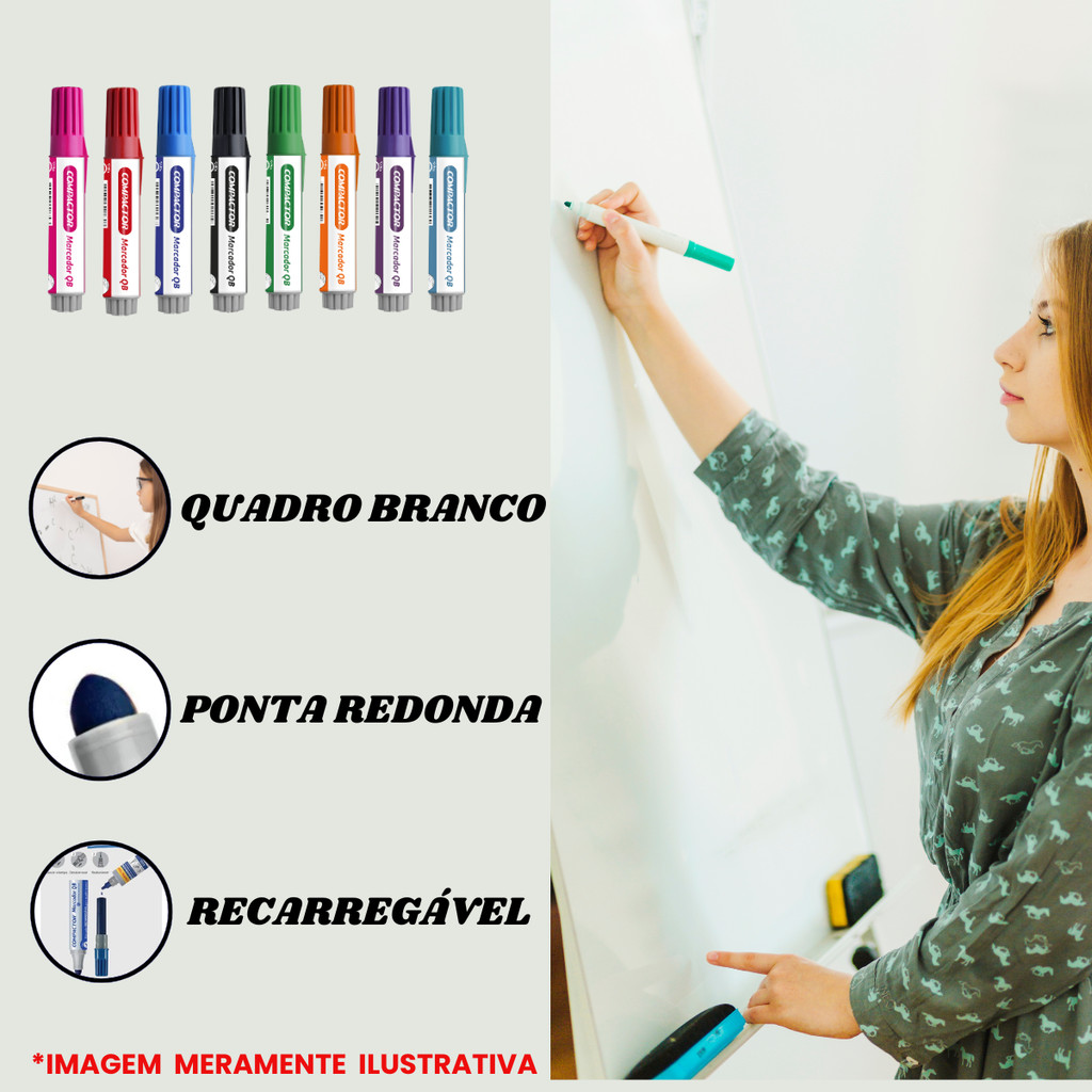 KIT C/ 2 MARCADORES PARA QUADRO BRANCO - COMPACTOR •Para pedidos feitos de segunda a sexta até às 12:00 horas (MEIO DIA) são despachados no mesmo dia!!! DESCRIÇÃO: • Marcador com Ponta de poliéster 6.0mm. • Marcador com Espessura de escrita 2.5mm. • Marcador com Tinta Especial. • Marcador Recarregável. • Marcador com Ponta Redonda. KIT INCLUSO: • 2 Pinceis (Cada Pincel De Uma Cor)