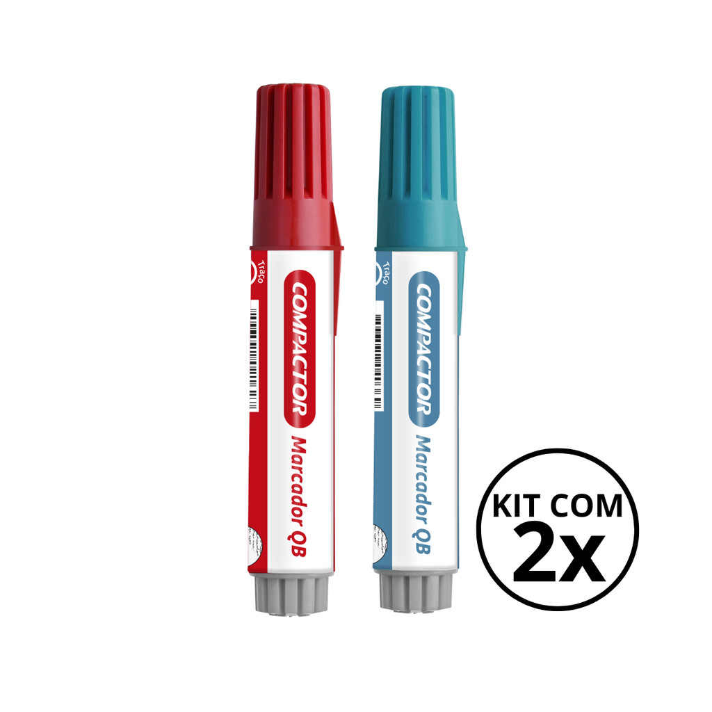 Kit com 2 Marcadores Para Quadro Branco - COMPACTOR COR:VERMELHO+TURQUESA