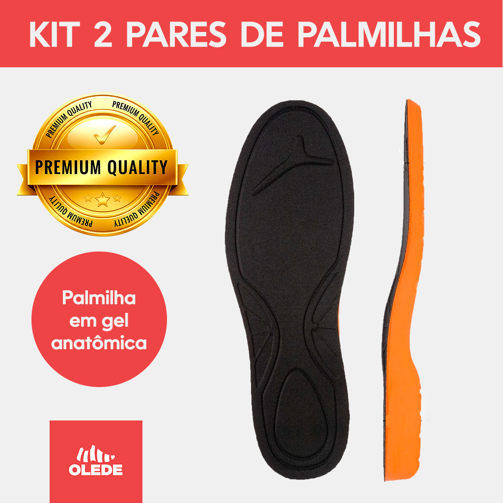 Kit com (2 ou 1) pares de Palmilha em Gel Ortopédica, Anatômica, Anti Impacto para Coturnos e Botas de Segurança.