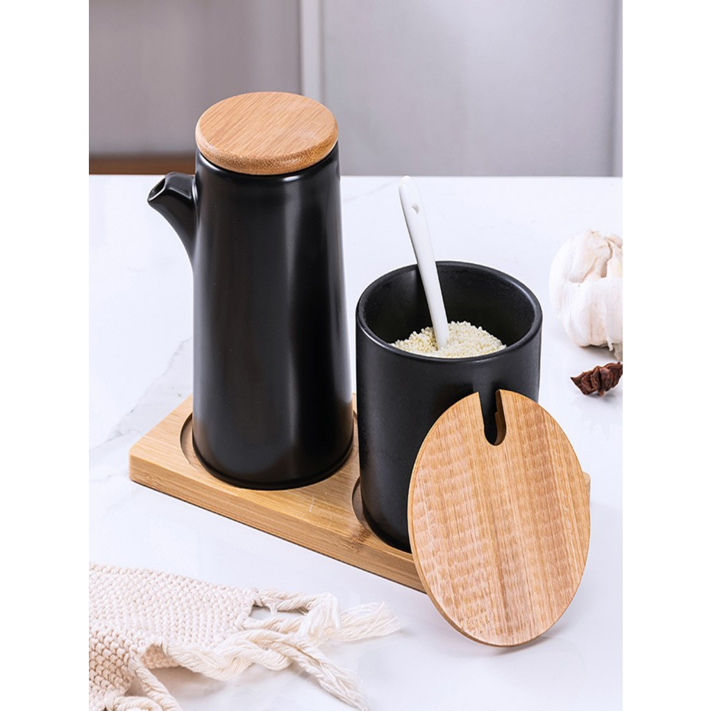 Kit Com 2 Peças Porta Mantemento em Cerâmica com bandeja colher de bambu