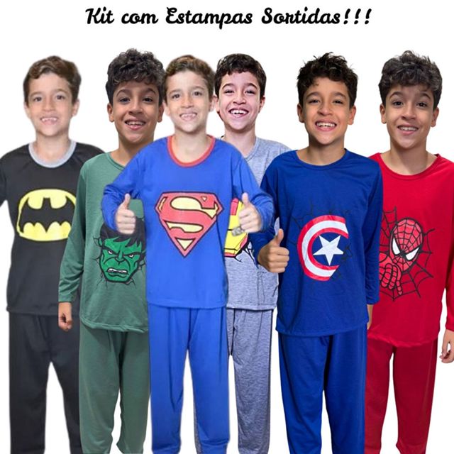 Kit com 2 Pijama Masculino Infantil Personagem - Pijama Masculino Estampas das fotos Sortidas