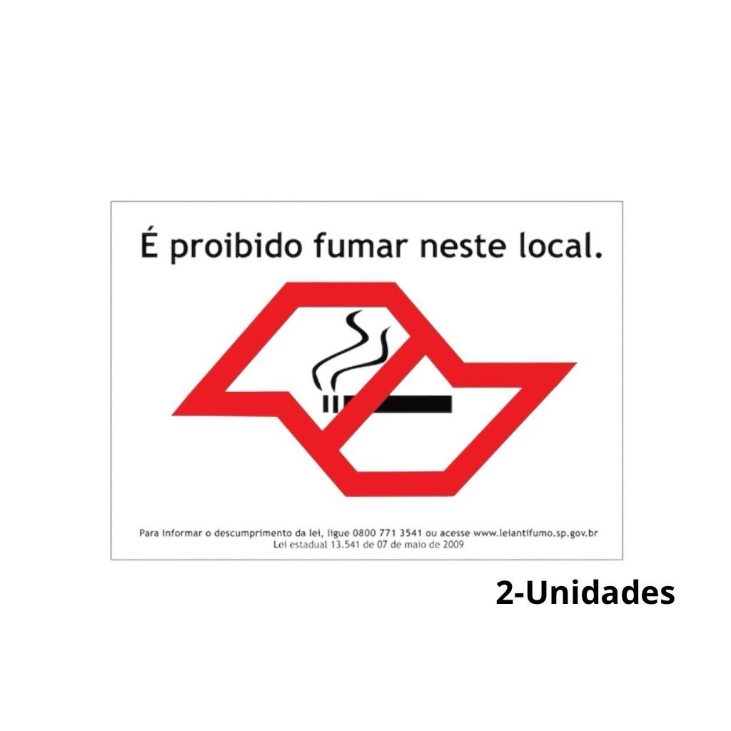 Placa Proibido Fumar - Tamanho : 30x20cm - Material : Placa em PS 1mm de espessura - Fixação : Fita Dupla Face - 2 Placas por embalagem Aplicação da placa de sinalização é bem fácil, acompanha fita dupla face de alta aderência em superfícies lisas. Antes de aplicar, limpe bem o local onde a fita vai aderir, retire o liner da fita dupla face e pressione bem contra o local da aplicação. Nossa equipe está a disposição para qualquer dúvida.