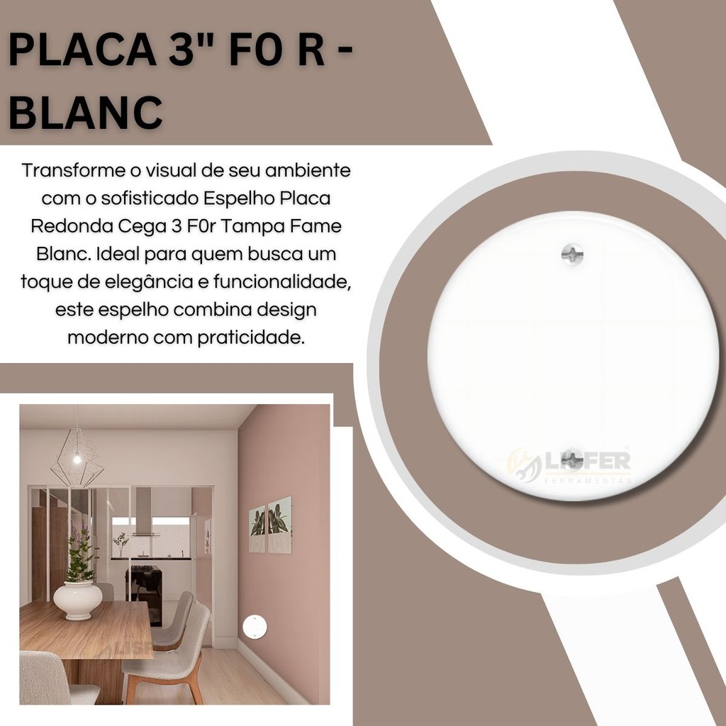 | Kit Com 2 Placas Espelho Redonda Cega 3x3 - Fame Blanc 3 este produto | R$ 17,18 | — | 4.9/5 | 14 |