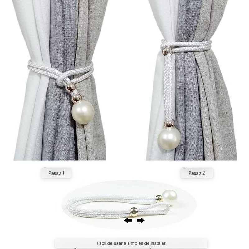 Kit Com 2 Prendedor Anel Fivela Fixo Para Cortina Pérola Enfeite Decorativo