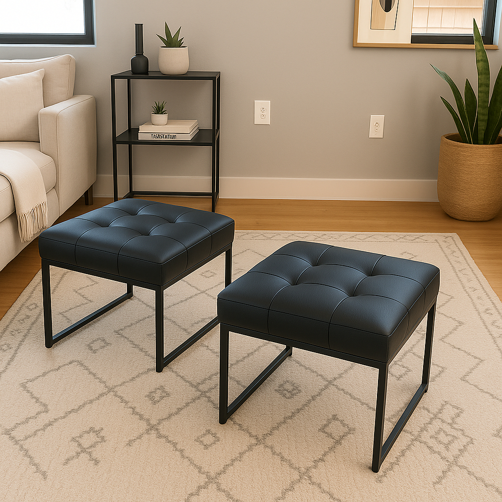 Kit com 2 Pufes STAR base de ferro preto, sala de estar, dormitório altura 45 cm largura e profundidade 45 cm.