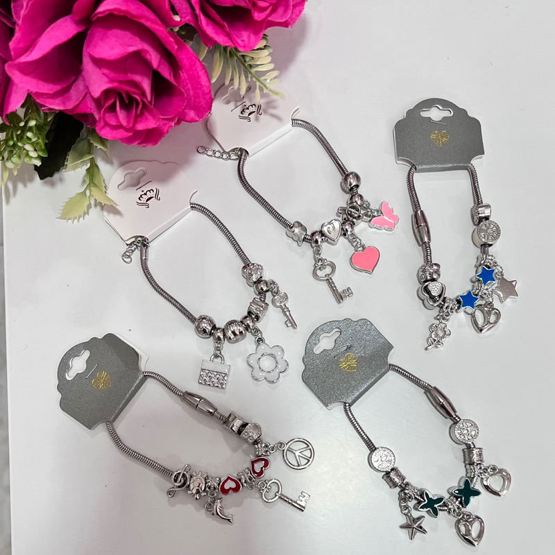 💓BEM VINDOS A IMPÉRIO PINK . ✨Pulseira berloques prateada estilo feminina sortidas . Pulseira linda e estilosa super delicada . 🌈Adicionar no carrinho a cor e quantidade desejada . Enviamos dentre todos modelos disponíveis . 💓Várias cores disponíveis . ✨conheça nossa loja temos vários outros anúncios
