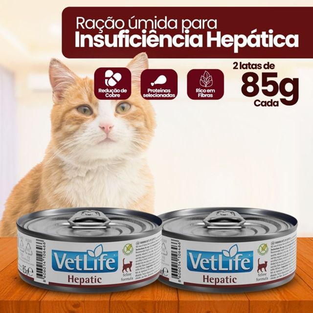| Kit com 2 Ração Úmida Vet Life Hepatic Gatos 85g este produto | R$ 36,18 | 25% | 5.0/5 | — |