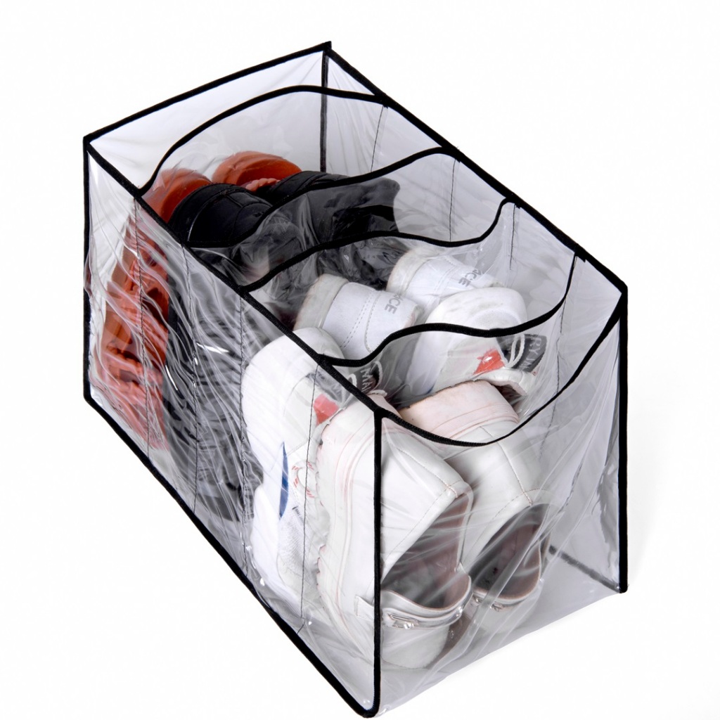 SAPATEIRA COLMEIA ORGANIZADORA SAPATOS... CONTÉM 2 UNIDADES.. MEDIDAS: Colmeia organizador tenis calçados /Tamanho: 40/30/25 Cm 5 divisórios Sapateira em formato de colmeia para você armazenar os calçados no guarda-roupa sem fazer bagunça! Toda transparente com visibilidade que te ajuda na hora de escolher o que vai usar. Acabou a procura de sapatos , com essa organização eles ficam organizados e fácil de localizar. Material: PVC Cristal e acabamento em viés de poliéster.