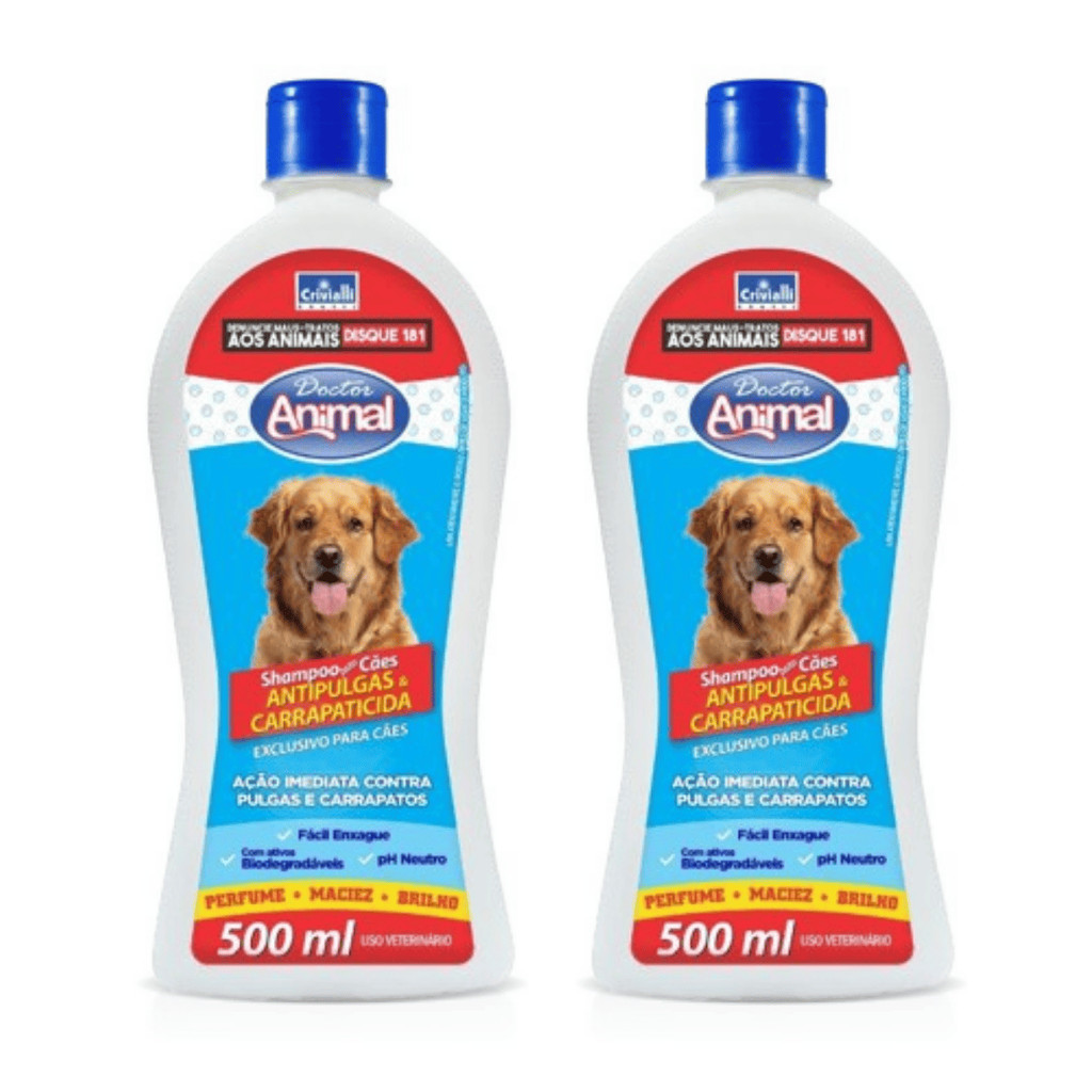 Kit com 2 Shampoo Doctor Animal Antipulgas E Carrapaticida para Cachorro 500ml