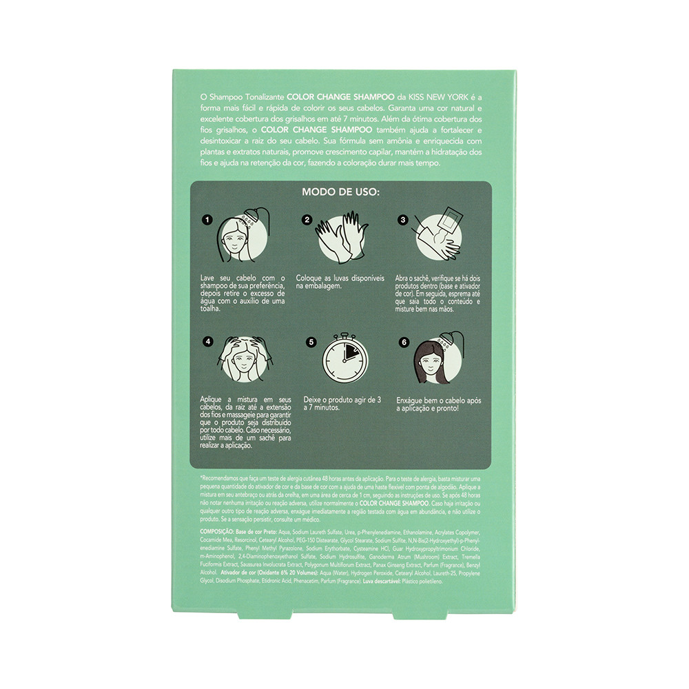 | Kit com 2 Shampoos Tonalizantes Color Change Preto - Kiss New York este produto | R$ 78,00 | 14% | 5.0/5 | 6 |