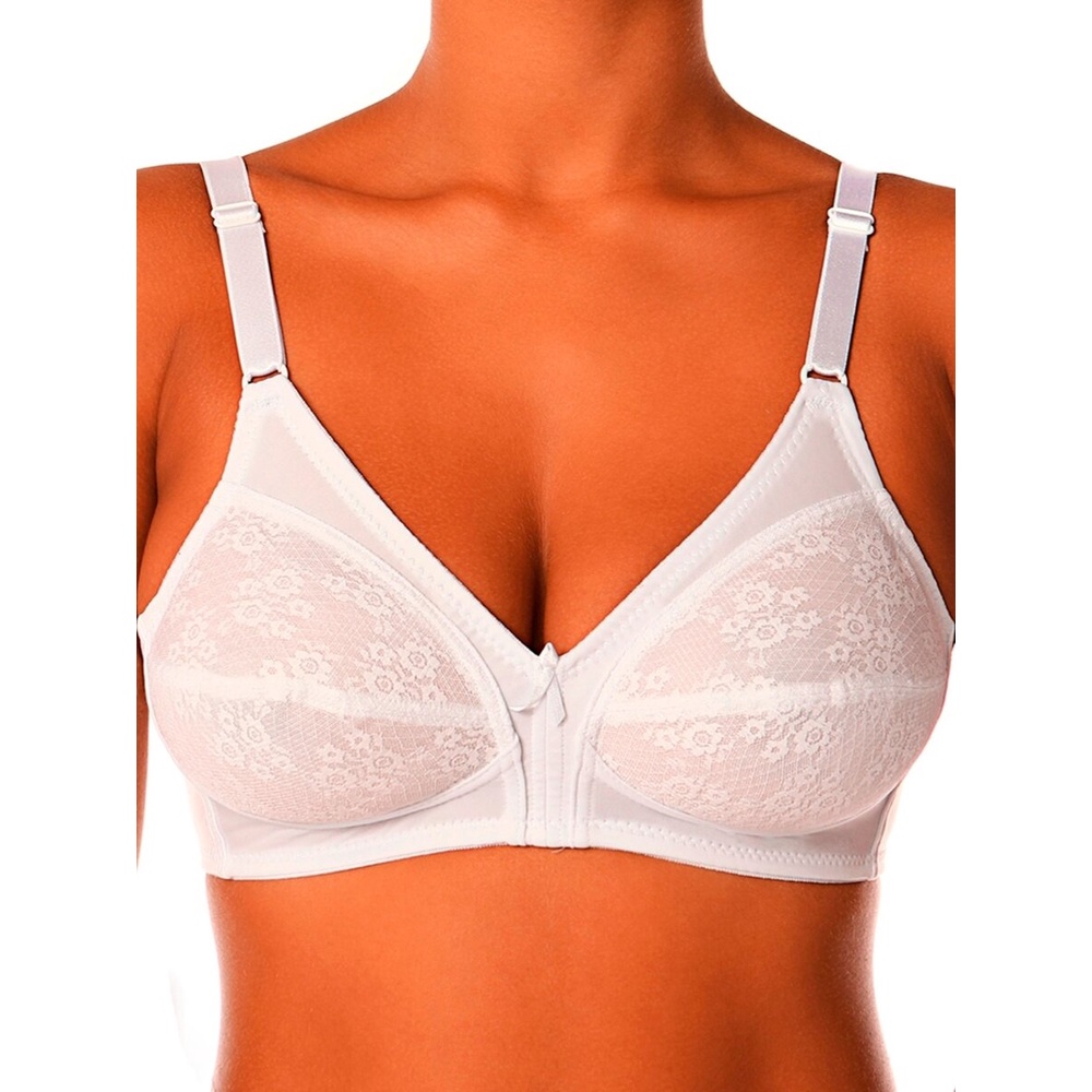 Detalhes DeMillus Sutiã Colonial DeMillus 61383 Em cetinete encorpado. Taças em renda forrada. Sem espuma e sem aro. Esse modelo substitui o antigo 78383. Tabela de Medidas: Características: Sustentação em cetinete encorpada. Com busto sem espuma e sem aro, revestido em renda. Alças e laterais largas para deixar seios e costas seguros. Atende tamanho Plus Size. Outros Detalhes: Taça B. Modo de Lavagem: Lavagem manual. Não usar alvejante. Não secar a maquina. Não passar a ferro. Não lavar a seco. Cores: Bege: 1 bege rosado e 1 branco Preto: 1 bege rosado e 1 preto Branco: 1 branco e 1 preto Composição: Corpo: 89% Algodão e 11% Elastano. Renda/Forro: 100% Poliamida.