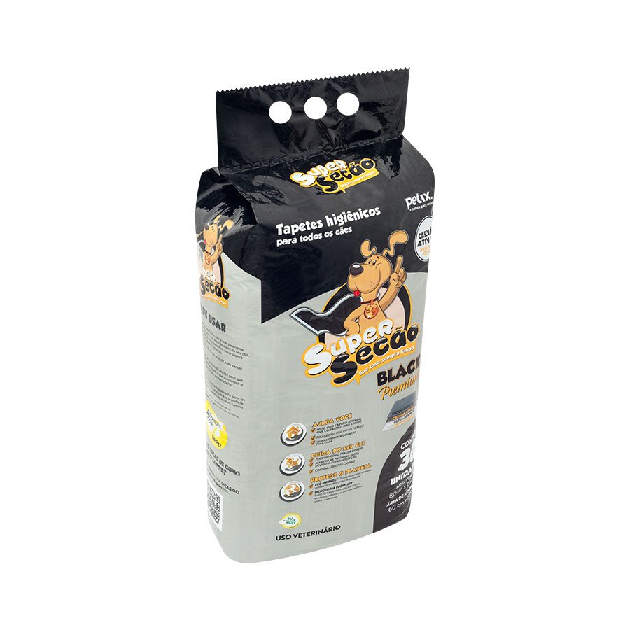 Kit com 2 Tapete Higiênico Super Secão Black Premium 80x60cm 30 Unidades