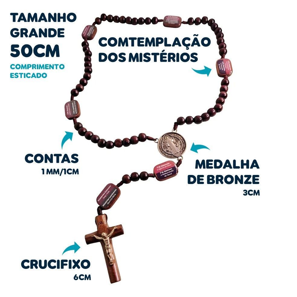 Kit com 2 Terços CATÓLICOS de Madeira Contemplação dos Mistérios SÃO BENTO