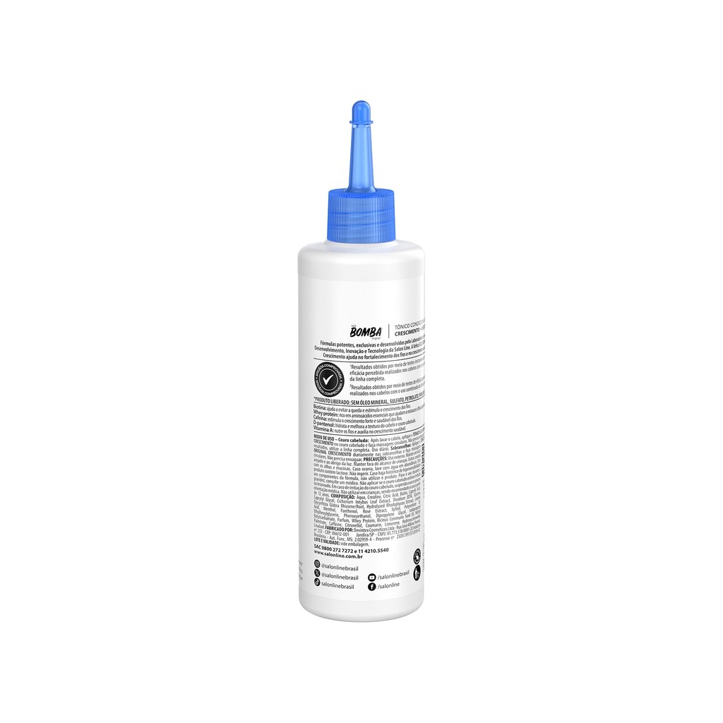 O Kit S.O.S Bomba conta com 1 Tônico Fortalecedor S.O.S Bomba Crescimento Acelerado, 1 Máscara de Hidratação da linha S.O.S Bomba Original e 1 Tônico Fortalecedor da linha S.O.S Bomba Antiqueda. Juntos, eles garantem fios mais fortes, controle de queda e crescimento comprovado. <>INDICAÇÕES$& Para quais tipos de cabelo? Todos os tipos de cabelos. Qual a indicação? Cabelos fracos, quebradiços, com frizz e danificados. Pode usar a partir de quantos anos? A partir de 12 anos. <>ATIVOS$& Quais os principais ativos? Tônico Fortalecedor S.O.S Bomba Crescimento Acelerado Café: estimula o crescimento, pois ativa a circulação do couro cabeludo e fortalece os fios. Biotina: ajuda a diminuir a queda e ainda estimula o crescimento do cabelo. Whey Protein: restaura as fibras capilares danificadas. Máscara de Hidratação S.O.S Bomba Original Whey protein: restaura a fibra capilar danificada. Vitamina A: fortalece os fios e auxilia no crescimento saudável. D-pantenol: hidrata e melhora a textura da fibra, combatendo as pontas duplas. Biotina: ajuda a prevenir a queda, estimula o crescimento e fortalece os fios. Óleo de rícino: hidrata, combate a queda por quebra, fortalece e recupera profundamente os fios. Tônico Fortalecedor S.O.S Bomba Antiqueda Creatina: restaura a fibra capilar. Aminoácidos: ajuda na reconstrução e fortalecimento dos cabelos. Broto de Bambu: revitaliza e hidrata a fibra capilar. <>MODO DE USO$& Qual a melhor forma de usar? Tônico Fortalecedor S.O.S Bomba Crescimento Acelerado Couro cabeludo: depois de lavar o cabelo, aplique o tônico e faça massagens circulares. Não precisa enxaguar. Sobrancelha: aplique o tônico fortalecedor diariamente nas sobrancelhas e faça massagens circulares. Não precisa enxaguar. Máscara de Hidratação S.O.S Bomba Original Com o cabelo molhado, aplique a Máscara mecha a mecha, enluvando os fios do comprimento às pontas. Deixe agir de 3 a 5 minutos e enxágue. Tônico Fortalecedor S.O.S Bomba Antiqueda Depois de lavar o cabelo, aplique o Tônico no couro cabeludo e faça massagens circulares. Não precisa enxaguar. <>CARACTERÍSTICAS$& É produto vegano? Os produtos não são veganos. É liberado? Apenas os Tônicos Fortalecedor S.O.S Bomba Antiqueda e Crescimento Acelerado são liberados.