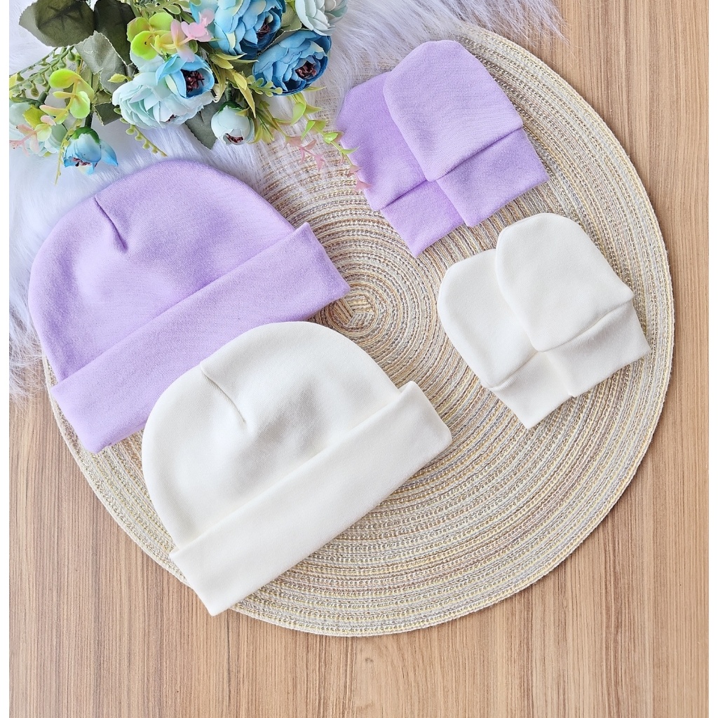 Kit com 2 Touca e 2 Luva Para Bebê Recém Nascido 100% Algodão Antialérgico Maternidade
