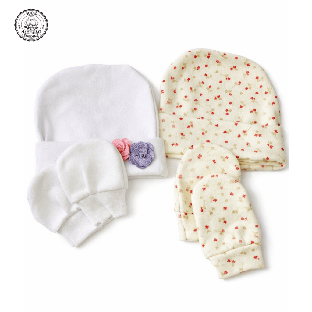 Kit com 2 Toucas e Luvas Personalizavel - 0 a 3 meses