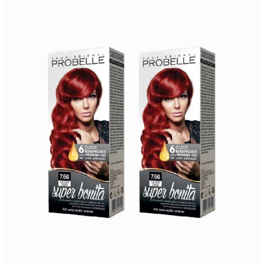 Kit Com 2 Unidades De Tintura Probelle Super Bonita 7.66 Louro Médio Vermelho Intenso