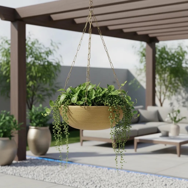 Kit com 2 Vasos para Plantas em Polietileno Bacia M COM CORRENTE para Pendurar