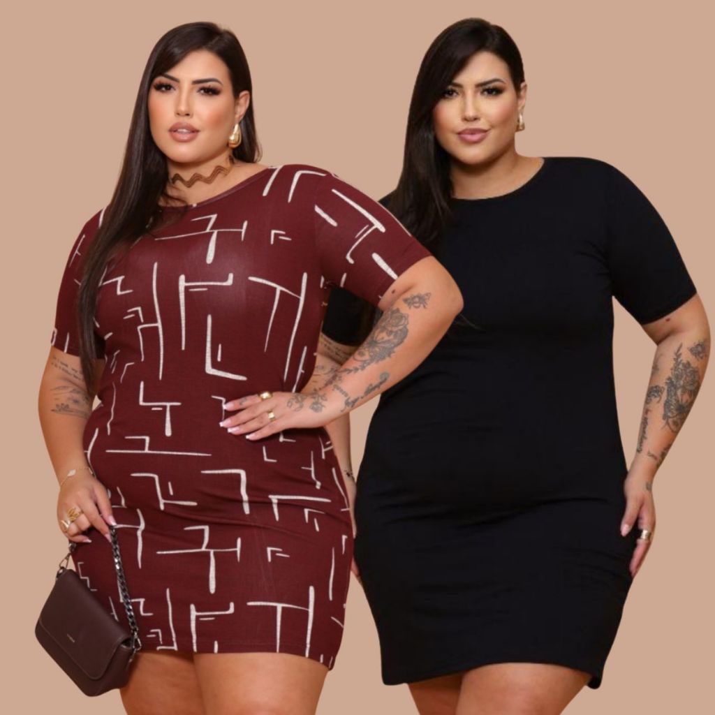 Kit com 2 vestidos Camisão Plus Size Curto camisetão curvy Vestido Tubinho Básico Plus Sise Verão