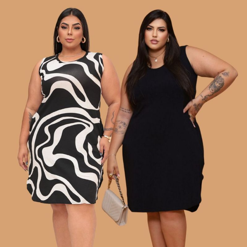LOJA OFICIAL | MODA PLUS SIZE | CONFECÇÃO PROPRIA O kit com 2 vestidos regata curto com bolsos é uma peça versátil e prática, ideal para compor looks casuais e confortáveis. Com um corte leve e fluido, ele valoriza a silhueta e proporciona liberdade de movimento. As alças em formato de regata oferecem um visual descontraído, perfeito para dias quentes ou ocasiões informais. Os bolsos, inseridos de maneira discreta, adicionam funcionalidade ao vestido, permitindo guardar pequenos itens como chaves ou celular, sem abrir mão do estilo. O tecido pode variar entre algodão, linho ou poliéster, garantindo conforto e frescor. Disponível em diversas cores e estampas! FAVOR CONSULTAR TABELA DE MEDIDAS ABAIXO: