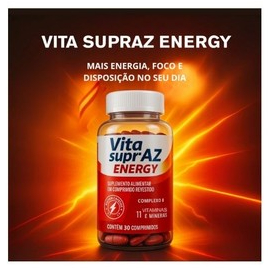 O que é o Vita Supraz Energy? É um suplemento formulado para aumentar energia, foco e disposição. Ideal para quem enfrenta rotinas intensas, seja física ou mental, e busca combater o cansaço e melhorar a concentração. Composição Contém uma combinação potente de: Cafeína: estimula o estado de alerta Taurina: auxilia na performance física e mental Magnésio: importante para o metabolismo energético Complexo B, Ferro, Biotina, Ácido Fólico: vitaminas e minerais essenciais para o corpo É livre de glúten e lactose, mas não é vegano2. Indicação Uso adulto (a partir de 19 anos) 1 comprimido ao dia, preferencialmente com alimentos Contraindicado para gestantes, lactantes e crianças Pessoas com condições médicas devem consultar um profissional antes do uso3 Apresentação Caixa com 30 comprimidos revestidos Também disponível em versão efervescente com sabor guaraná energético ENVIO IMEDIATO Gostou? adquira já o seu, é bem simples basta seguir os passos abaixo: 1 Clique em comprar 2 efetue o pagamento 3 aguarde o envio e acompanhe o rastreio 4 receba o produto avalie a loja e seja feliz. FAQ Qual o tempo que demora para o envio? enviamos imediatamente qual o tempo de garantia? garantia contra defeitos de fabricação, fornecida pelo fabricante qual o contato da loja? atendemos diariamente pelo chat do aplicativo onde fica a loja? Em Curitiba Pr. Qual a Validade do produto? Os produtos são novos e lacrados, tendo longas validades.
