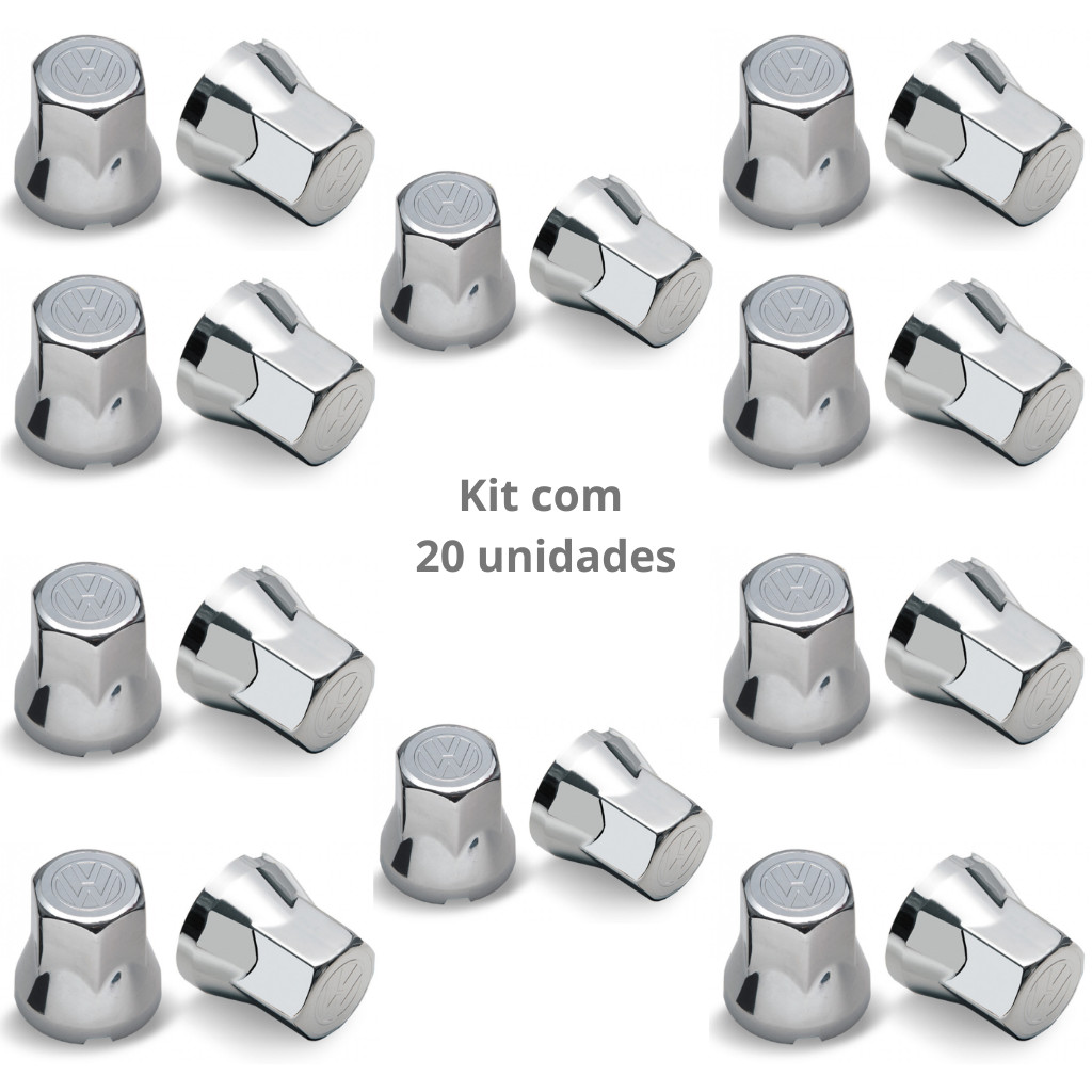 Kit com 20 Capa de Porca Cromada Volkswagem VW com logo 33MM