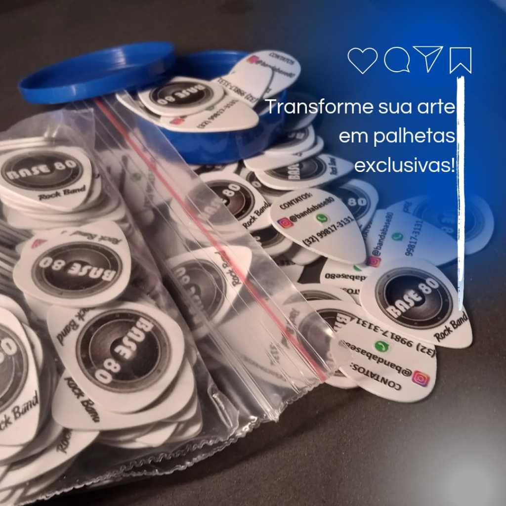 KIT 20 PALHETAS PERSONALIZADAS – GUITARRA E VIOLÃO Kit com 20 palhetas personalizadas em alto relevo, indicadas para guitarra, violão e baixo. Produto funcional, resistente e com excelente acabamento, ideal tanto para uso musical quanto para brinde personalizado. A personalização é feita com impressão permanente, que não sai com o uso normal, garantindo durabilidade e aparência profissional. ESPECIFICAÇÕES DO PRODUTO Quantidade: 20 palhetas personalizadas Material: Plástico PS (Poliestireno) Espessuras disponíveis: 0,7 mm – Standard branco 1,0 mm – Standard, Jazz XL, Jazz III e Triangular (preto ou branco) 1,5 mm – Standard, Jazz XL, Jazz III e Triangular (preto) Indicado para: Guitarra, violão e baixo, ukulele e cavaco PERSONALIZAÇÃO Palhetas personalizadas com logomarca, nome, arte colorida ou QR Code funcional. Nos modelos Standard, é possível utilizar foto, limitada a apenas um lado da palheta. A arte é combinada diretamente pelo chat após a compra. PRAZO DE PRODUÇÃO E ENVIO Tempo médio de produção: até 2 dias úteis. O prazo de entrega depende da logística da Shopee após a postagem. GARANTIA E QUALIDADE Produto com garantia de fábrica. INFORMAÇÕES IMPORTANTES Em caso de dúvidas, utilize o chat da Shopee.