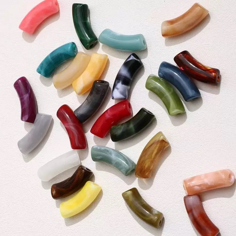 Kit com 20 peças para pulseira de Tubo Acrílico Bambu Curvo Colorido Acessório para Montar Joias DIY
