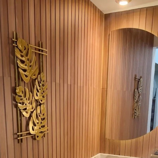 O Ripado se tornou o queridinho nos projetos de interiores e é uma das tendências que não tende a sair de moda tão cedo! Sua versatilidade oferece à qualquer ambiente elegância, estilo e modernidade! ATENÇÃO: Pedidos em datas diferentes ou separados, possuem tons de cor diferentes, compre tudo em uma única vez com a quantidade exata para o seu local. Caso tenha dúvidas sobre quantas unidades comprar, fale conosco através do chat, ficaremos felizes em lhe ajudar. Inicie a aplicação pela área mais alinhada da parede, as ripas devem ser encaixadas umas nas outras. O produto pode ser instalado em superfícies lisas, niveladas e limpas (sem qualquer imperfeição). Antes de iniciar a aplicação, tire a medida da parede e verifique a altura desejada. Após definir as medidas, se necessário, é possível cortar as barras com uma serra multiuso, serra de mão ou serra esquadria com baixa rotação (se o corte for realizado inadequadamente - em alta rotação, causará alteração no acabamento do produto). Características do Produto: Altura de 45 centímetros Largura de 11 centímetros Espessura aproximada 3 milímetros Ripado de 3 centímetros com espaçamento de 5 milímetro Não é necessário cola (Acompanha Fita Dupla Face) Material em MDF
