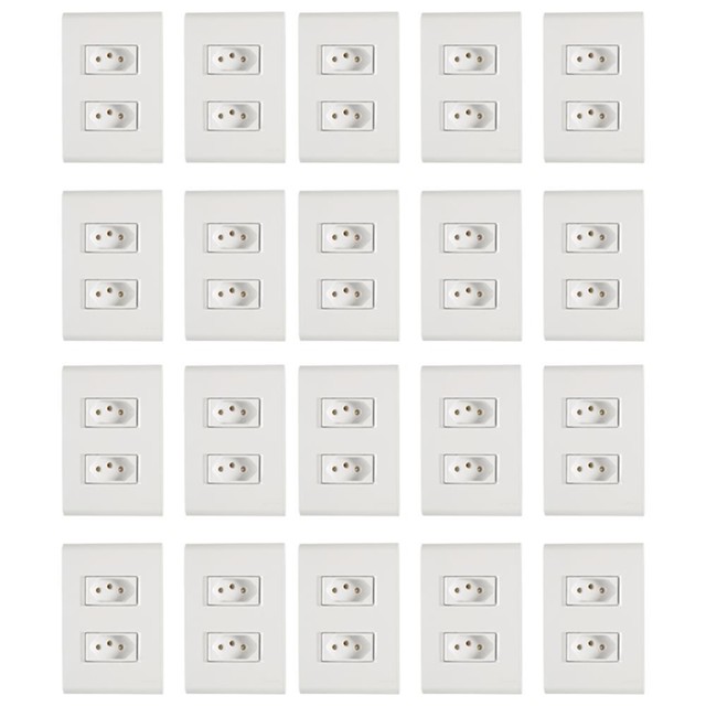 Leve praticidade e eficiência para sua casa, com o Kit de 20 Tomadas com 2 Tomadas 2P+T Tramontina 10A 250V Liz Branco. Produzido em termoplástico branco, ele vai garantir maior praticidade e proporcionar um acabamento perfeito entre a placa e a parede, sem deixar frestas e vincos na instalação. Além disso, possui furo oblongo que facilita a fixação e a regulagem da placa à parede e evita que ela fique desalinhada. Sua fixação não é aparente e pode ser utilizada tanto em paredes de alvenaria, quanto em paredes de madeira. A placa ainda pode ser trocada por outras cores da linha, garantindo maior versatilidade. A escolha perfeita para compor seus ambientes, com muito mais estilo!