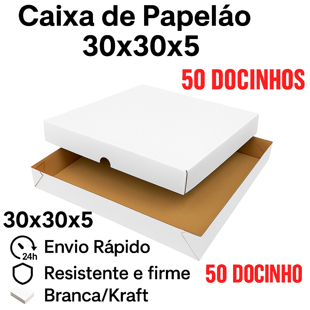 Encontre o item Kit com 25 Caixas 30x30x5 para 50 Docinhos ou Salgados Branco na subcategoria Caixas de Papelão (de Papelaria), disponível na Shopee Brasil por R$ 62,50. Nota 4.9 de 5 na Shopee e 19 unidades vendidas, este produto se destaca pelo excelente custo-benefício.