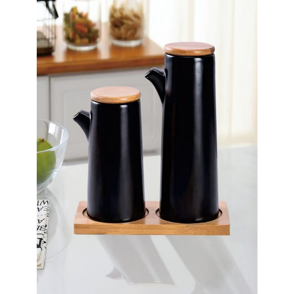 Kit Com 2Peças Porta Mantemento em Cerâmica com Suporte de Bambu