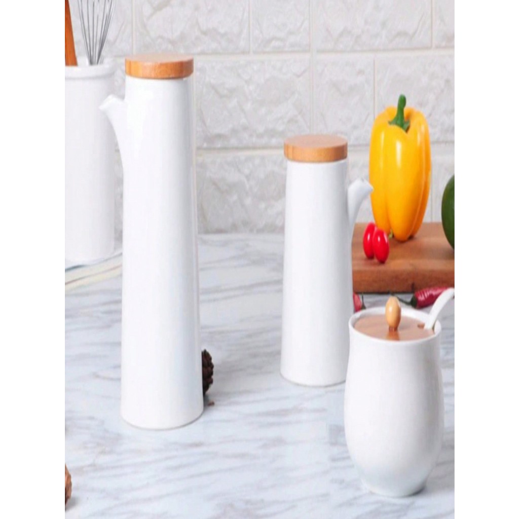 Kit com 2 peças porta mantimento em cerâmica com tampa de bambu e colher com bandeja Mantenha seus alimentos armazenados e seguros com este excelente pote. Design prático e compacto com eficiente tampa que veda perfeitamente, protegendo e conservando o alimento fresco por muito mais tempo. Perfeito para acomodar alimentos secos, mantendo a despensa, armário ou bancada sempre organizados. Estilo: Moderno Material: cerâmica(galheteiro 350ml e 450ml) e Bambu (tampa) Itens Incluso: 2 pote com bandeja