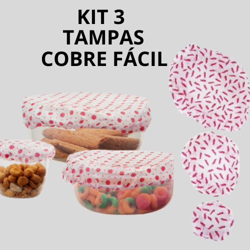 A Tampa Fácil Kit 3/6 ou 9 Peças é a solução ideal para manter seus alimentos frescos e protegidos. Com um design prático e funcional, essas tampas se ajustam perfeitamente a diferentes tipos de recipientes, garantindo vedação eficiente e facilidade no manuseio. Feitas de material resistente, elas são ideais para uso diário, proporcionando mais organização e praticidade na sua cozinha. Informações do Produto: - Conjunto com 3 peças de tampas de tamanhos variados - Material resistente e durável, ideal para o uso diário - Design funcional que garante vedação eficiente - Fácil de manusear, com encaixe perfeito em diferentes recipientes - Proporciona mais praticidade e organização na sua cozinha - Adequada para manter os alimentos frescos e protegidos Especificações Técnicas: Composição: 100% Polietileno Tamanhos: Pequeno - 18cm de Diâmetro Médio - 29cm de Diâmetro Grande - 38cm de Diâmetro P - Copo / Caneca / Pires M - Prato / Tigela G - Travessa ATENÇÃO! O envio das estampas é feita de forma sortida e aleatória. NÃO É POSSÍVEL ESCOLHER A ESTAMPA DO PRODUTO!