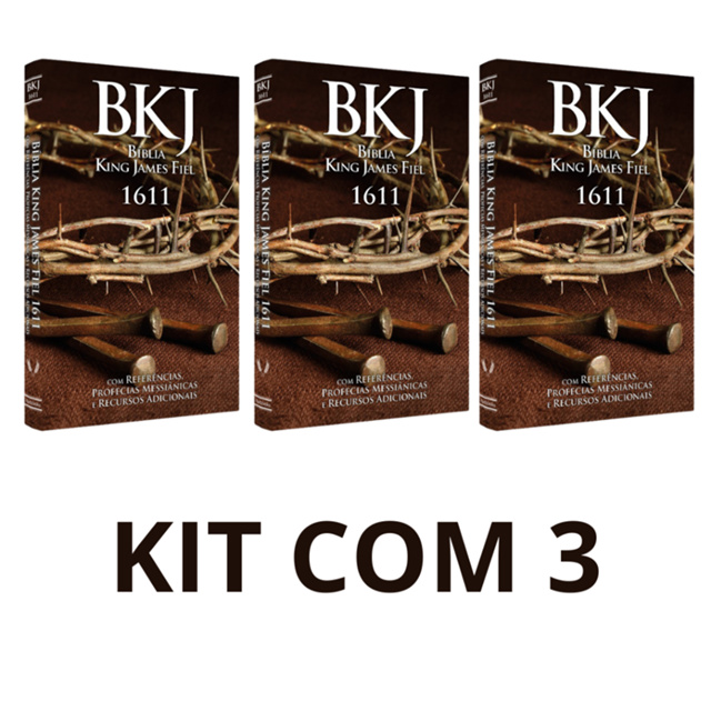 | Kit com 3 Bíblia King James 1611 | Letra Normal | Brochura | Coroa este produto | R$ 74,90 | — | 5.0/5 | — |
