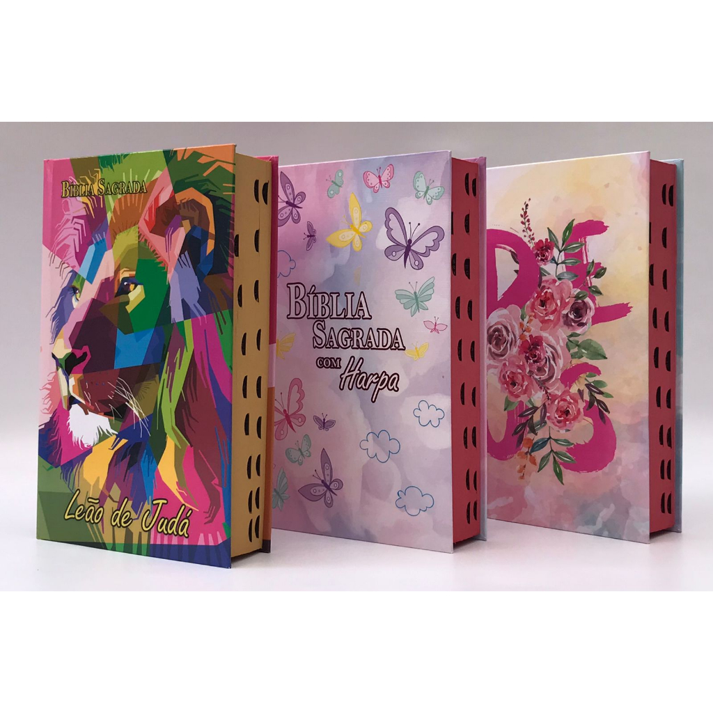 Kit com 3 Bíblias Sagrada Tamanho Médio 12,5x19 cm Com Harpa Palavras de Jesus em Vermelho (Kit M)