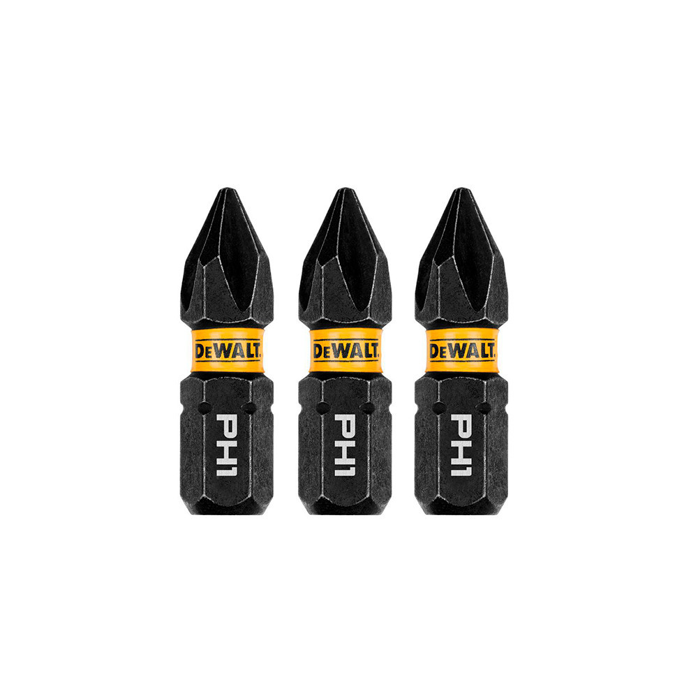 Kit com 3 Bits Phillips de Impacto PH1 x 25mm Flextorq Dewalt DWAF1PH1IR3