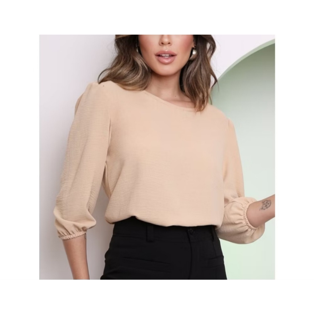Blusa Feminina Alfaiataria Elegante Social Basica MANGA 3/4 Tecido Duna Leve e Elegante Tamanhos : P, M, G, GG E G1