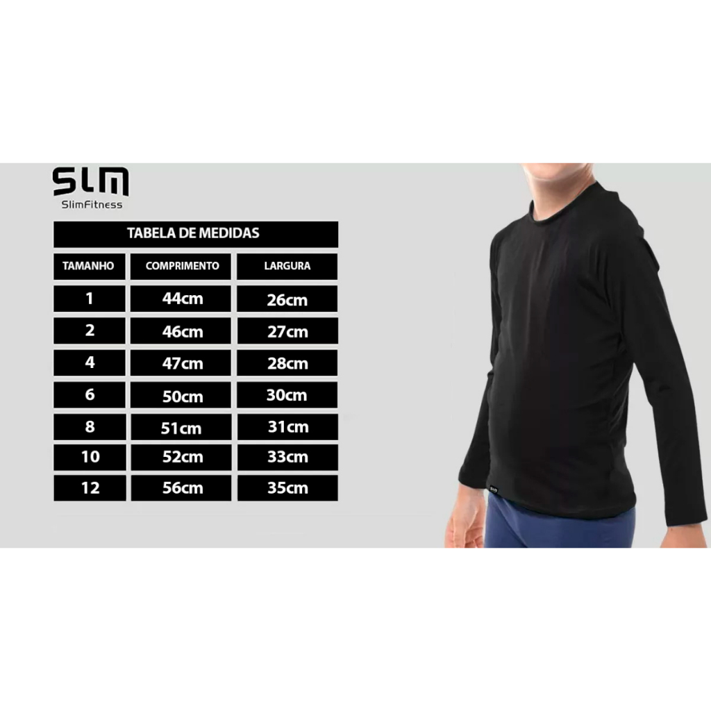 Camisa Térmica Segunda Pele UV PROTECTION Slim Fitness, criada para proteger a pele da ação nociva dos raios UV-A e UV-B, com o fator de proteção solar FPS 50+ presente em seu DNA. Bloqueia de 99% dos raios UV-A e UV-B, além de um fator de proteção 50 (FPU 50+) que não sai após as lavagens. Composição: 91% Poliéster, 9% Elastano Proteção UV: Adequada para exposição ao Sol, o efeito de proteção UV é permanente. Uso: Piscina; Praia; Trilha; Pescaria; Caminhada; Corrida; Atividades ao Ar Livre; Voo a Vela; Veleiro, etc. Tipo: Manga longa Infantil Unissex Gola: Redonda Origem: Nacional - Slim Fitness Fashion Garantia: Contra defeitos de fabricação. Cuidados: Dispensa o uso de amaciante, Dispensa o uso de ferro de passar Medidas aproximadas das camisas infantis em centímetros (Altura X Largura): 01 - 44x26cm (Altura X Largura) 02 - 46x27cm (Altura X Largura) 04 - 47x28cm (Altura X Largura) 06 - 50x30cm (Altura X Largura) 08- 51x31cm (Altura X Largura) 10 -52x33cm (Altura X Largura) 12 -56x35cm (Altura X Largura) ATENÇÃO: AS CORES SERÃO ENVIADAS DE FORMA TOTALMENTE ALEATÓRIA, NÃO SENDO POSSÍVEL A ESCOLHA DAS MESMAS . ****ATENÇÃO**** AS FOTOS USADAS NO ANUNCIO SÃO PROTEGIDAS POR DIREITOS AUTORAIS, QUALQUER USO INDEVIDO ESTÁ SUJEITO A AÇÃO JUDICIAL ****ATENÇÃO****