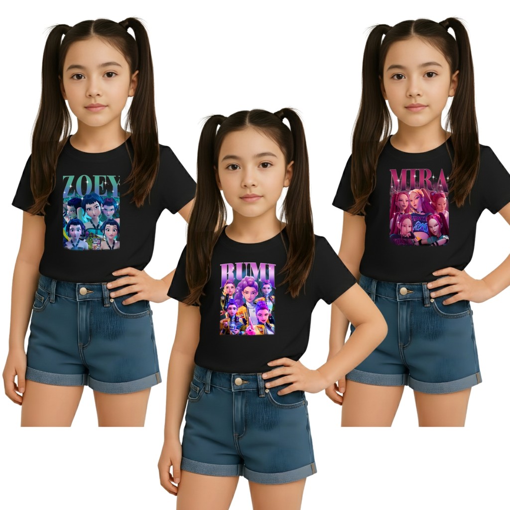 Kit com 3 Camisetas Personagem Rumi Zoey Mira Guerreiras K-Pop Huntrix