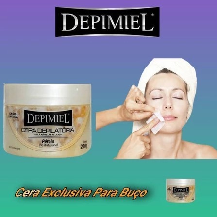 Kit 3 Cera Depimiel Depilatória Pérola para Buço 250gr Aqui na RENATA TIEME você encontra os melhores produtos na linha de Beleza, Saúde, Cosméticos e muito mais, aproveite os melhores preços do mercado e a entrega garantida! Delicada e sensível, a área do buço merece cuidados especiais, por isso a Depimiel desenvolveu a Cera Pérola Exclusiva para Buço. Sua fórmula equilibrada é ideal para regiões sensíveis, possui uma textura cremosa e um suave perfume. Elaborada com Óleo de Macadâmia que proporciona maciez e suavidade à pele, além de Dióxido de Titânio que aumenta a aderência da cera ao pelo e não a pele, garantindo uma maior eficiência na depilação, amenizando a dor e vermelhidão. Apresenta baixa temperatura e secagem rápida, reduzindo os resíduos e a agressão à pele. Compre agora mesmo! Indicação: Buço Aquecimento: A cera Depimiel pode ser aquecida com a própria embalagem no micro-ondas (por aproximadamente 1 minutos), em banho-maria ou aquecedores elétricos (termoceras); em ambos os casos, deve-se retirar o produto da embalagem e utilizar recipiente apropriado ao tipo de aquecimento. Modo de usar: Passo 1: Com a cera já aquecida, confira a temperatura aplicando uma pequena porção no antebraço. Se tiver suportável proceda com a depilação, caso o contrário aguarde esfriar um pouco. Passo 2: Faça a limpeza da área a ser depilada com uma loção adstringente para retirada de impurezas, resíduos de cremes, óleos ou suor. Passo 3: Com auxílio de uma espátula aplique uma camada extremamente fina de cera no sentido do crescimento dos pelos. Coloque o lenço descartável para depilação sobre a cera e friccione-o. Com uma das mãos mantenha e pele esticada e com a outra puxe o lenço com firmeza e rapidez em sentido contrário ao crescimento dos pelos. Passo 4: Aplique o Óleo Removedor Hidratante para retirar possíveis resíduos de cera da pele. Passo 5: Para finalizar, aplique o Gel Corporal Calmante que proporciona alívio e bem estar à pele. Conteúdo da Embalagem: 03 Cera Depimiel