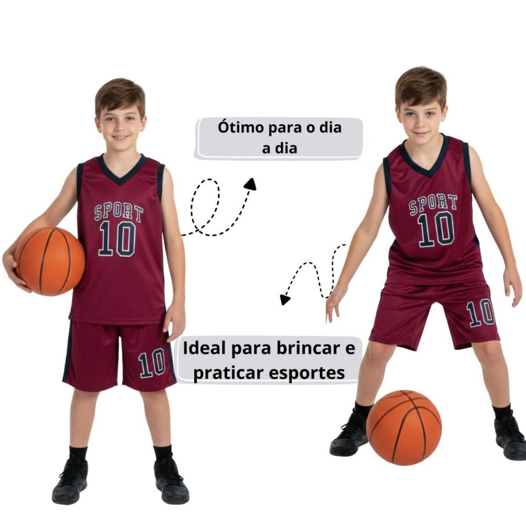 Kit 3 Conjuntos de Basquete Infantil Masculino – 3 Regatas + 3 Shorts Esportivos | Leve, Confortável e Secagem Rápida Garanta estilo, conforto e liberdade para os pequenos com o kit com 3 conjuntos de basquete infantil, ideal para o dia a dia, treinos e momentos de lazer! Produzidos em Helanca Light (100% Poliéster), os conjuntos são leves, respiráveis e possuem secagem rápida, mantendo a criança sempre confortável mesmo nas atividades mais intensas. 💥 O KIT CONTÉM: ✔️ 3 Regatas esportivas ✔️ 3 Shorts confortáveis 🎯 DIFERENCIAIS DO PRODUTO: ✔️ Tecido leve, fresco e respirável ✔️ Não desbota e não amassa facilmente ✔️ Excelente caimento no corpo ✔️ Liberdade total de movimentos ✔️ Ideal para basquete, esportes, escola e lazer ✔️ Ótimo custo-benefício 🎨 CORES E MODELOS: Os conjuntos são enviados sortidos, com cores e estampas variadas, conforme disponibilidade em estoque. ⚠️ IMPORTANTE: Caso tenha preferência de cor, envie mensagem no chat ANTES de finalizar o pedido. Atendemos conforme disponibilidade. 📏 TAMANHOS (FORMA GRANDE): P (5 a 6 anos) • Regata: 56 cm (Comprimento) x 40 cm (Largura) • Short: 36 cm (Comprimento) x 46 cm (Cintura) M (7 a 8 anos) • Regata: 58 cm x 42 cm • Short: 39 cm x 51 cm G (9 a 10 anos) • Regata: 60 cm x 43 cm • Short: 41 cm x 53 cm GG (10 a 11 anos) • Regata: 62 cm x 46 cm • Short: 43 cm x 55 cm 📌 As medidas podem variar de 1 a 2 cm. 🔥 Perfeito para crianças cheias de energia que amam esporte, conforto e estilo! 👉 Aproveite agora e garanta já o seu kit com excelente custo-benefício!