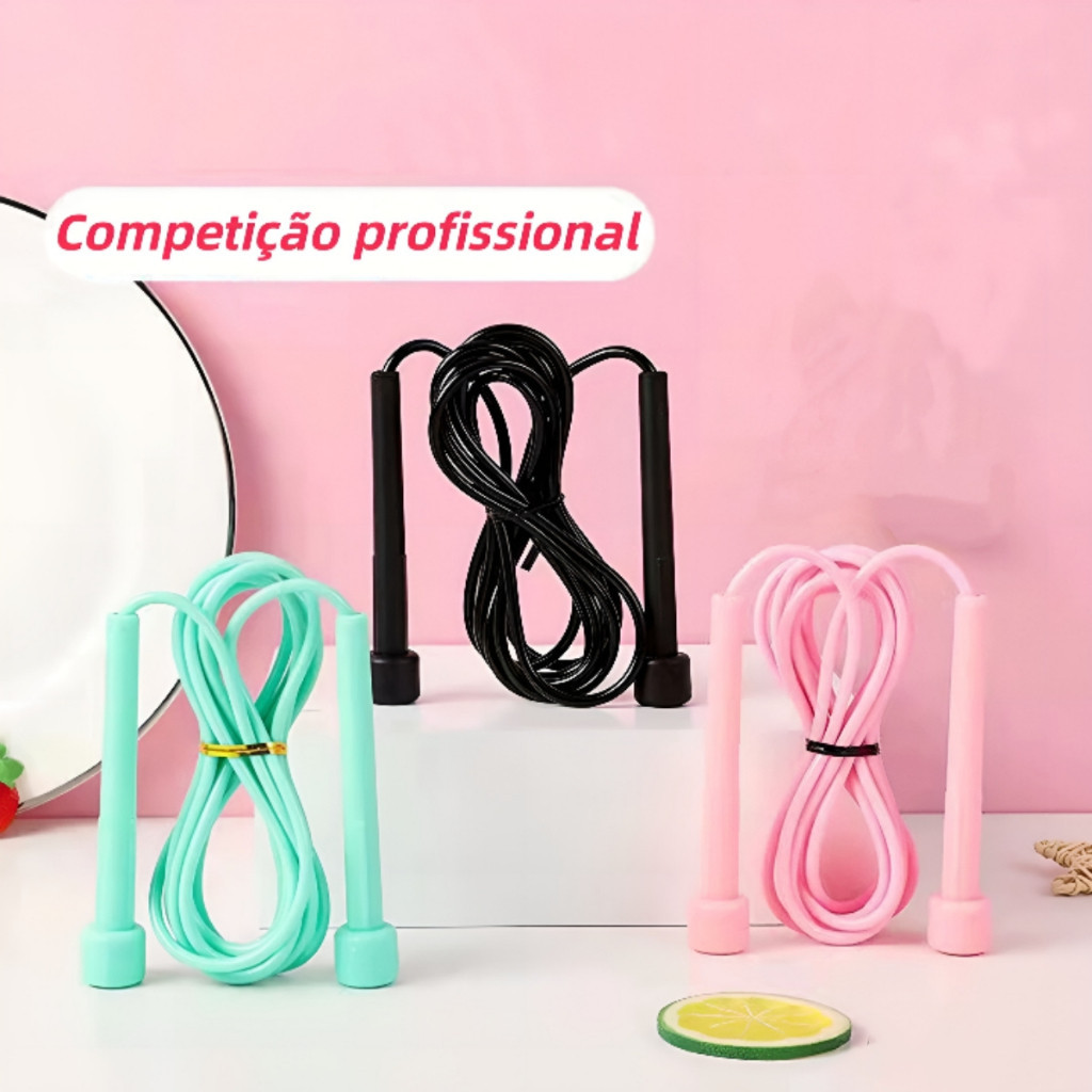 Corda de Pular Profissional Ajustável 🪀 Corda de pular profissional ajustável em PVC, com 280 cm de comprimento! A corda de pular de PVC da une velocidade e durabilidade em um só produto. Além disso, permite ajustar com facilidade o comprimento para a medida ideal, compatível com a sua altura e experiência de treino. 💪 Pular corda é um dos melhores exercícios cardiovasculares: exercita todo o corpo, traz resultados rápidos, é econômico e pode ser feito em qualquer lugar e a qualquer hora. 🕒 Ao praticar constantemente, você mantém o corpo em forma e com muita saúde! ✅ ESPECIFICAÇÕES TÉCNICAS 📏 - Material: Polipropileno (PP) e PVC - Comprimento: 2,80 m - Dimensões aproximadas: 280 x 0,5 cm - Peso: aproximadamente 200 g - Ajuste: regulagem fácil nos pegadores - Rotação: Free Rotation (rotação livre sem necessidade de rolamentos) - Cores: preto, rosa, verde água BENEFÍCIOS PARA O CORPO 🔥 - Alto gasto energético e queima de calorias - Fortalece pernas e glúteos - Treino aeróbio e anaeróbio eficaz - Melhora condicionamento físico, equilíbrio, agilidade e coordenação - Trabalha panturrilhas e articulação do tornozelo - Fortalece membros superiores e região abdominal TIPOS DE TREINO 🏃♀️ Pular | Agilidade | Coordenação | Força | Resistência | Equilíbrio | Condicionamento Físico | Tonificação Muscular LOCAIS IDEAIS PARA USO 🏠 - Casa - Estúdios - Academia - Clínicas de Pilates - Fisioterapia - Condomínios - Ao ar livre - Qualquer lugar com espaço CUIDADOS COM O PRODUTO 🧴 - Não deixar exposto ao sol por muito tempo - Limpeza: água e álcool 50% cada - Não tentar dobrar a corda